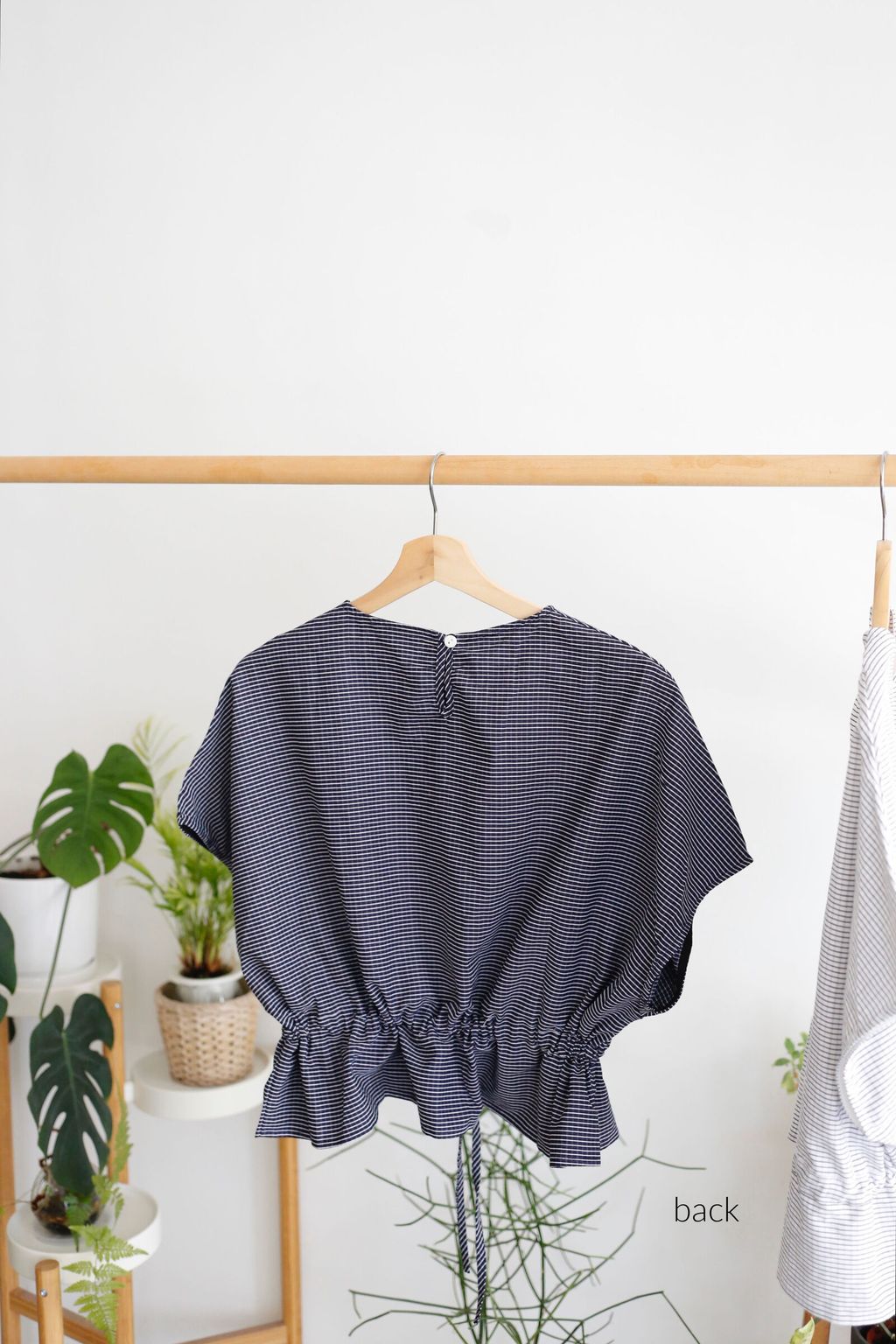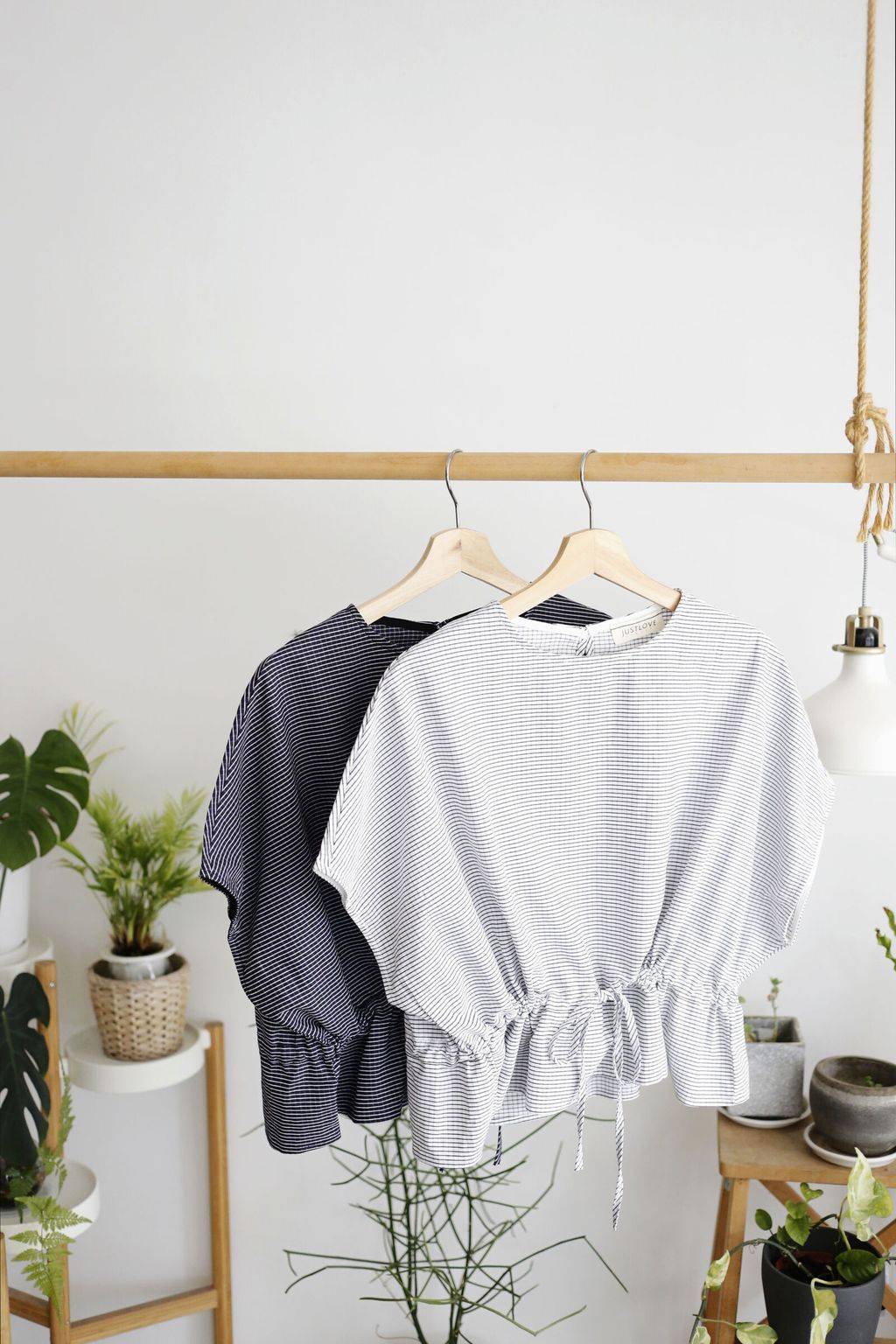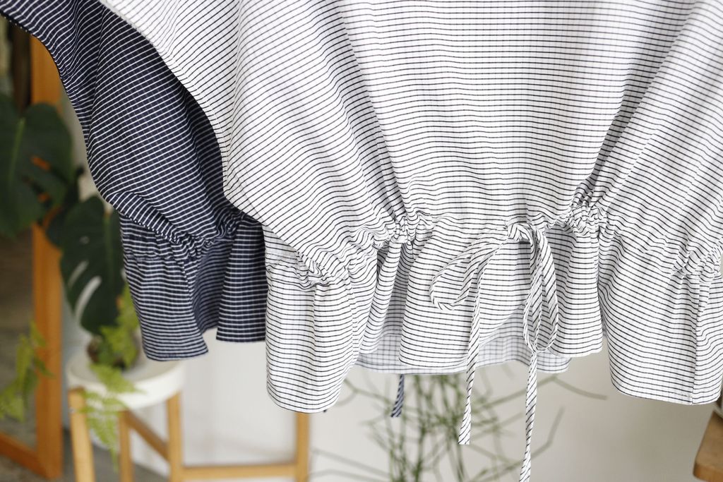 Type: Waist Drawstring Stripey Top | Cotton Fabric | Waist Length Adjustable by Drawstring | Loose Type Top