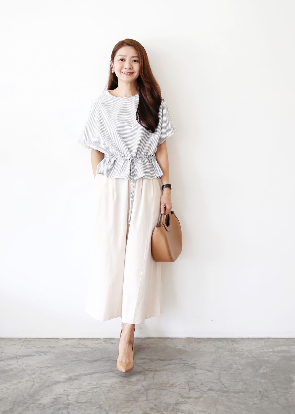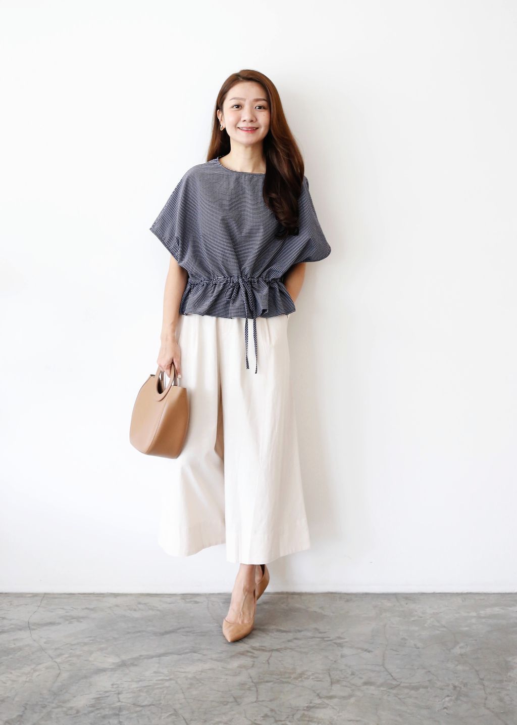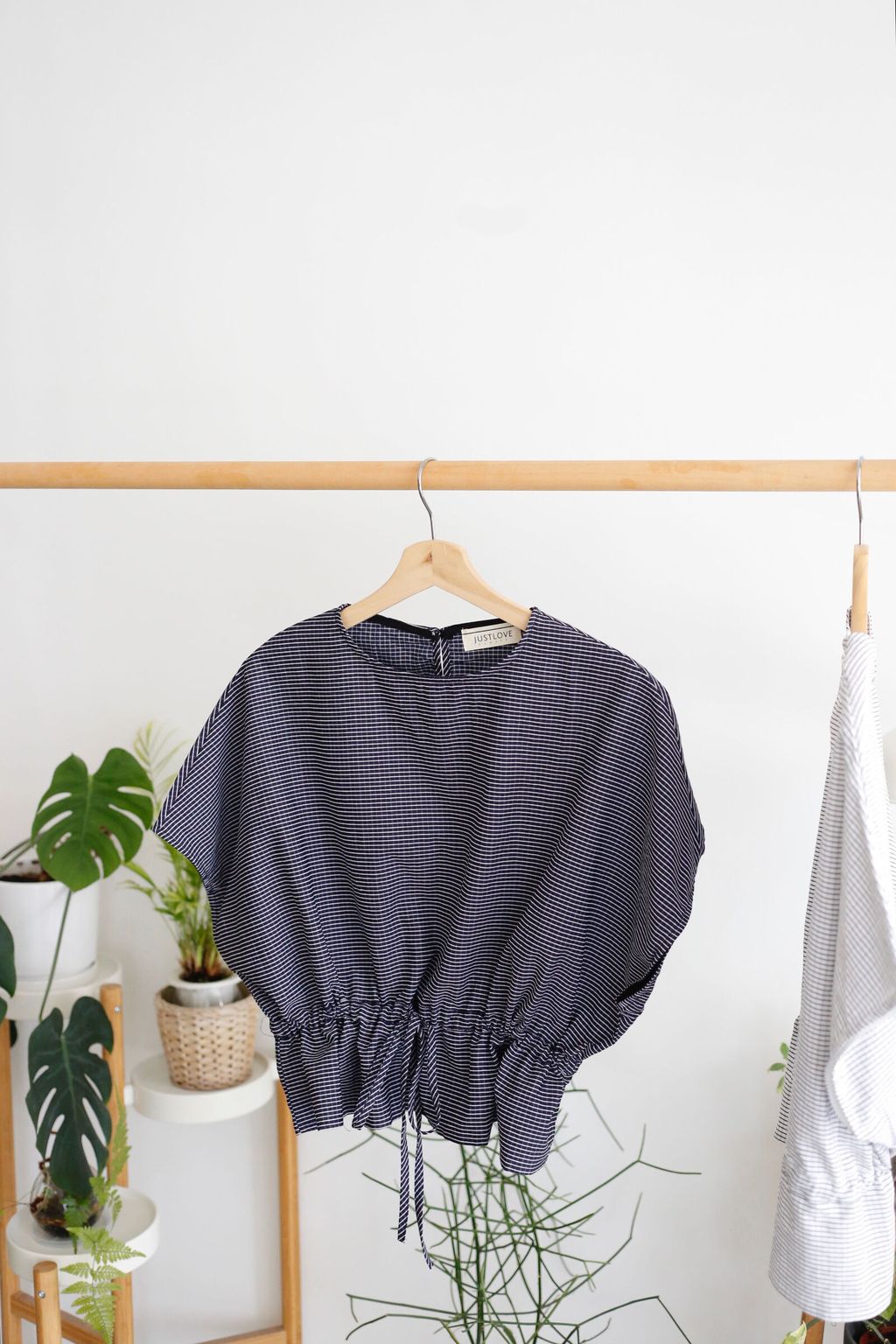 Type: Waist Drawstring Stripey Top | Cotton Fabric | Waist Length Adjustable by Drawstring | Loose Type Top