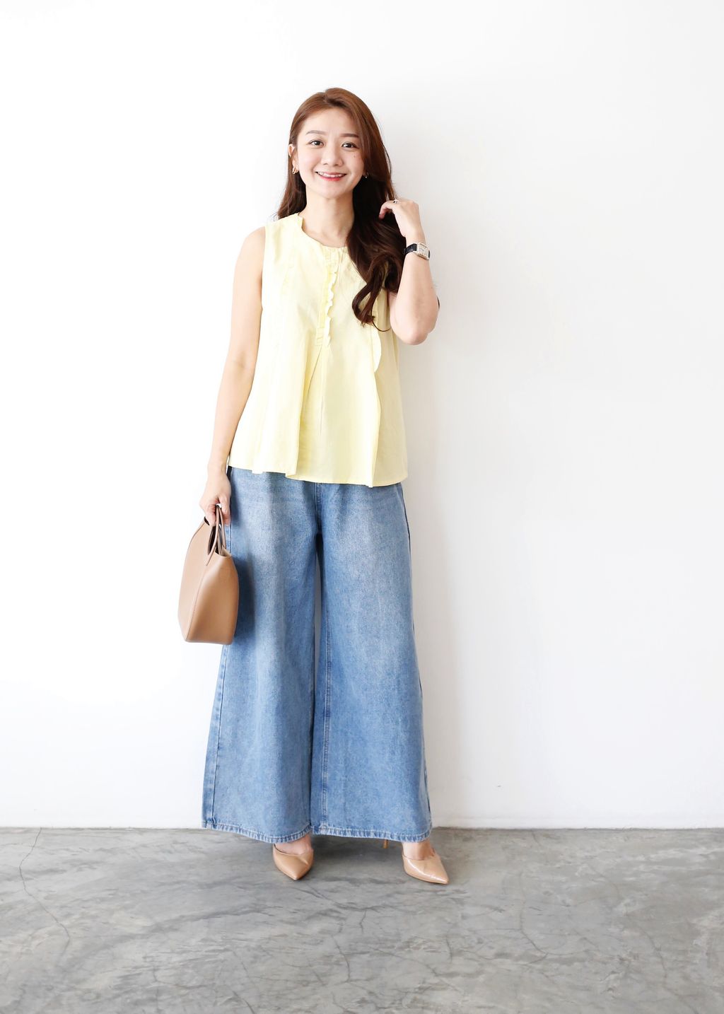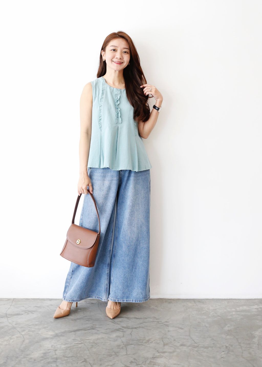 Type: Willow Ruffles Sleeveless Top | Soft Cotton Linen Fabric | Delicate Ruffles Trim Details | A-Line Cutting That Draped On Body
